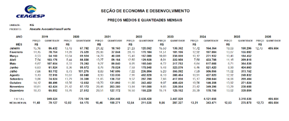 El precio del aguacate Hass (Avocado) actual en la central de abastecimiento, CEAGESP