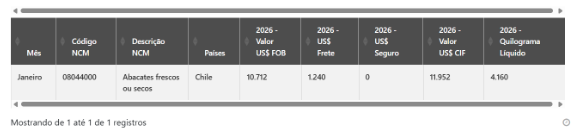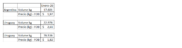 Muy poco fue importado de Chile en enero/2026.